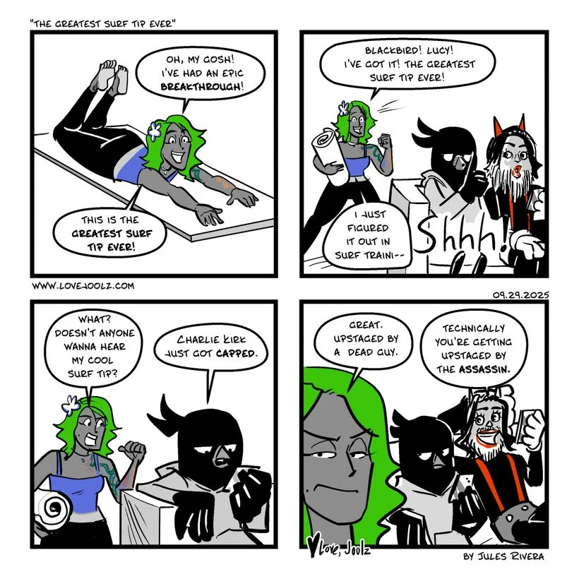It's true. I had my biggest breakthrough in surf training on the day Charlie Kirk got assassinated. How annoying.